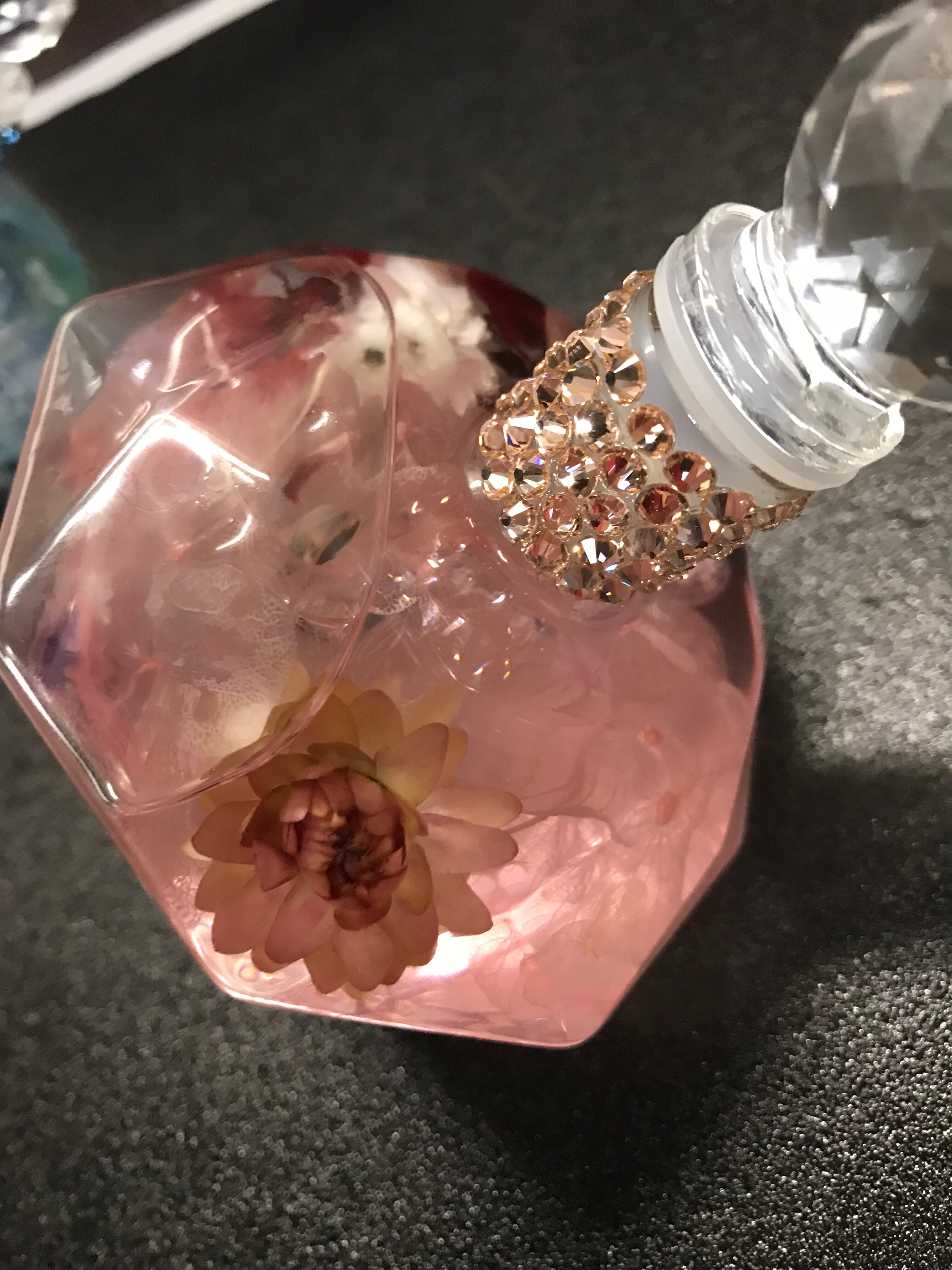 ボトルの首の所と下からチラシでスワロフスキーを使いデコしています...♪*゜